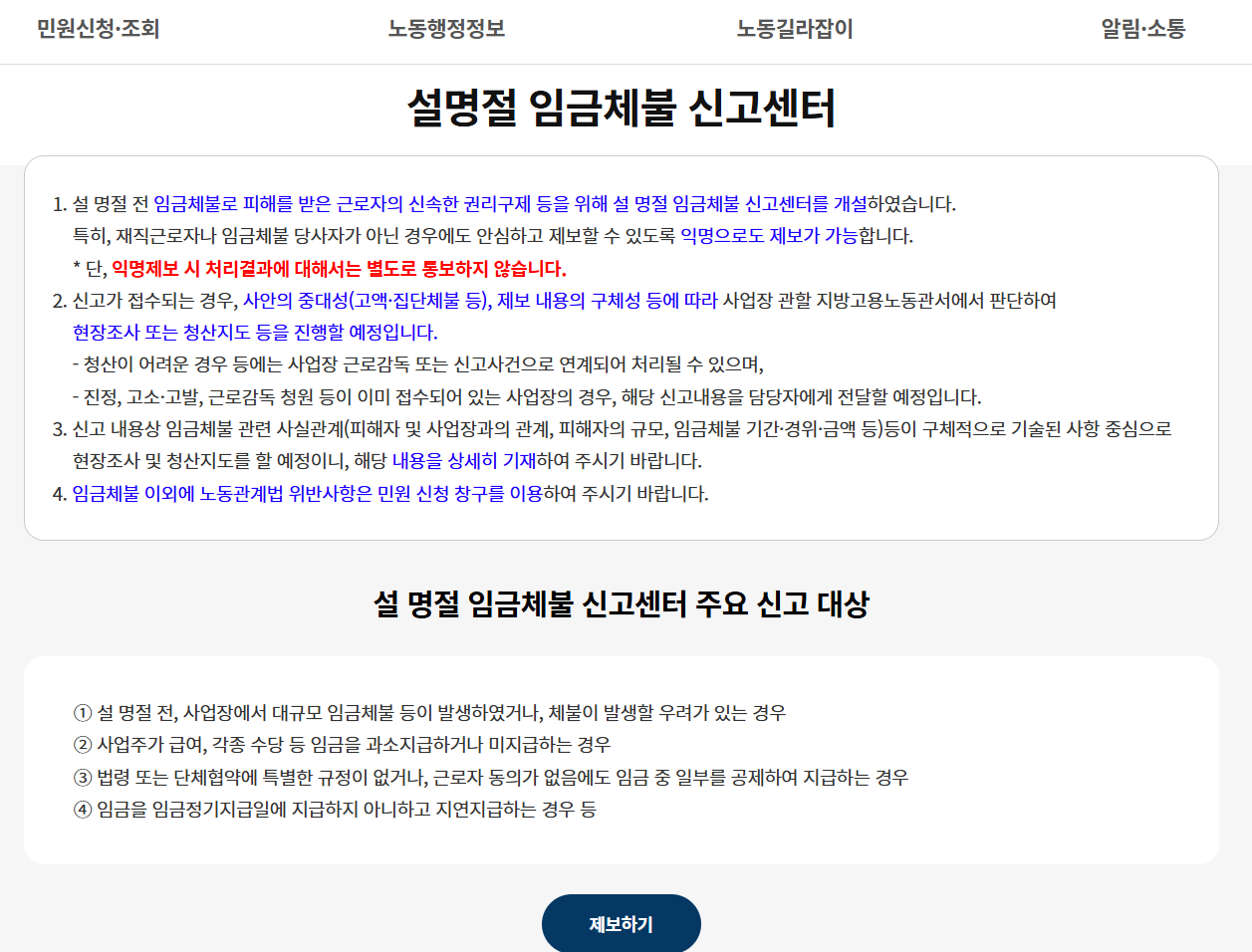 - 고용노동부 임금체불 신고센터: 링크 바로가기